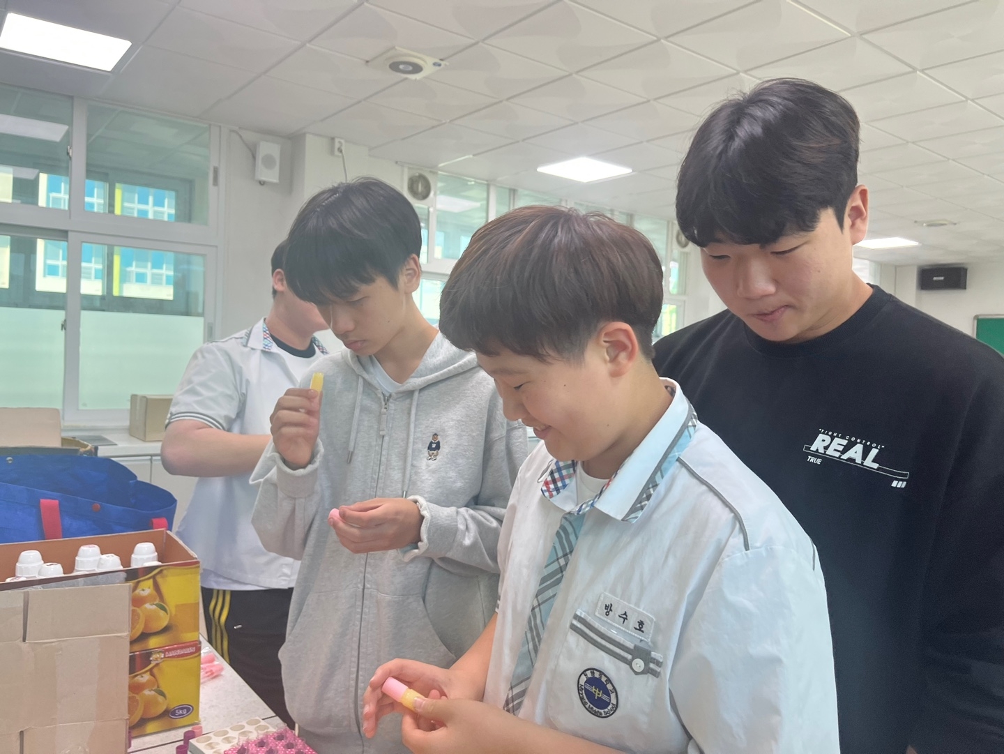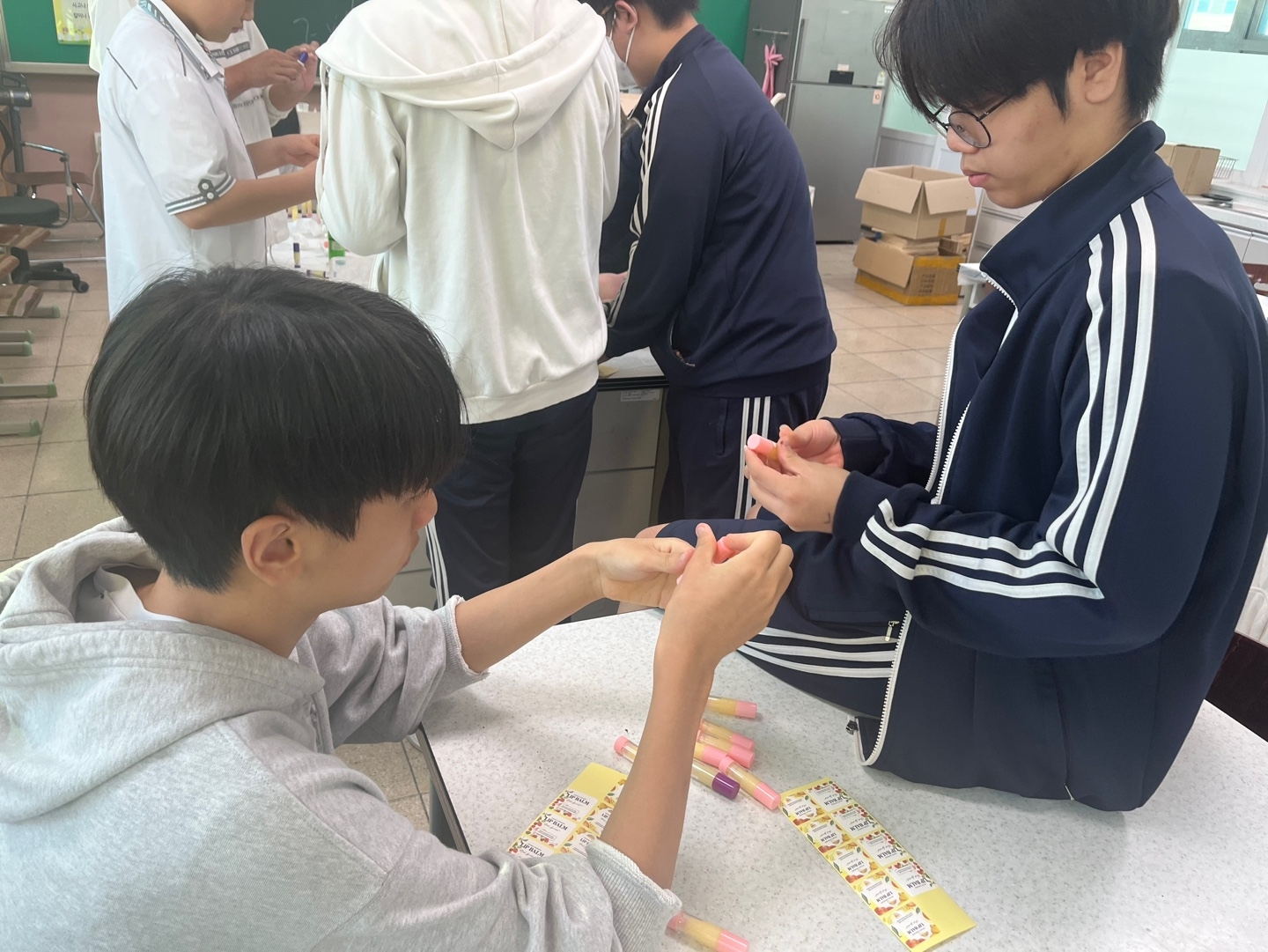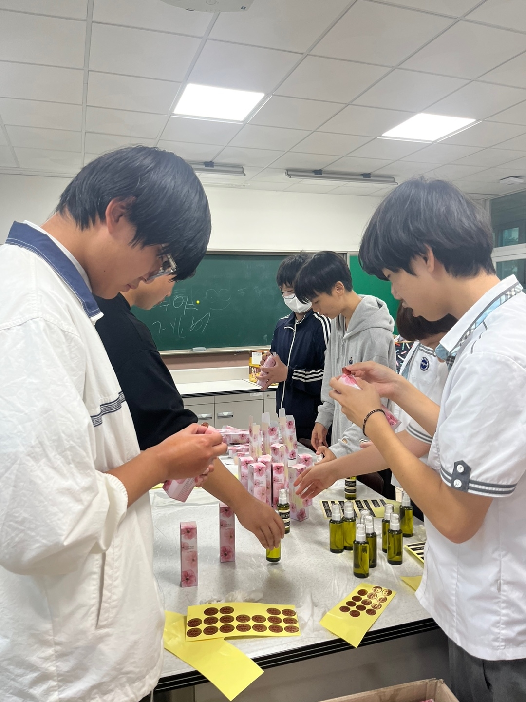 교육복지우선지원사업 중 공동사업으로 관내 5개교 학생들이 위생용품을 만들어 필요한 곳에 매년 기부하고 있습니다. 밀양중학교에서는 올해 바디오일과 립밤을 만들었습니다. 밀양중 학생들이 만든 물품과 더불어 밀양여중, 세종중, 밀성초, 밀성중 학생들이 만든 디퓨저, 향수, 물파스, 비누를 밀양드림스타트에 기부하였습니다. 함께 참여한 학생들은 나눔의 기쁨을 알아가는 귀한 시간을 가졌습니다.