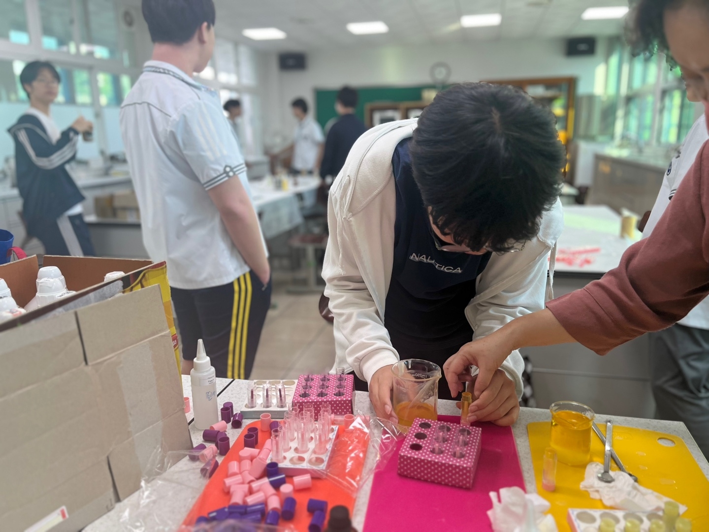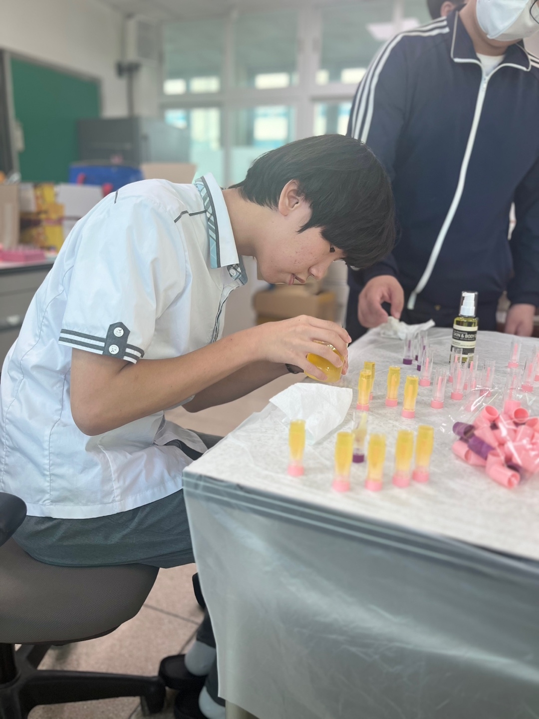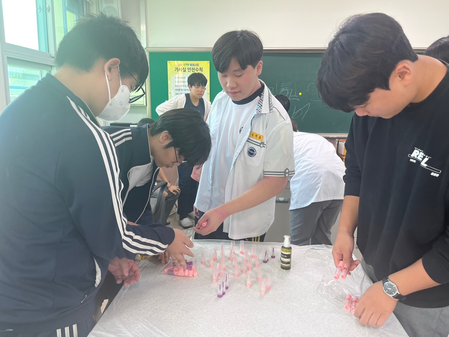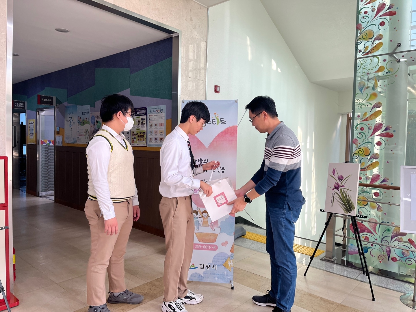 교육복지우선지원사업 중 공동사업으로 관내 5개교 학생들이 위생용품을 만들어 필요한 곳에 매년 기부하고 있습니다. 밀양중학교에서는 올해 바디오일과 립밤을 만들었습니다. 밀양중 학생들이 만든 물품과 더불어 밀양여중, 세종중, 밀성초, 밀성중 학생들이 만든 디퓨저, 향수, 물파스, 비누를 밀양드림스타트에 기부하였습니다. 함께 참여한 학생들은 나눔의 기쁨을 알아가는 귀한 시간을 가졌습니다.
