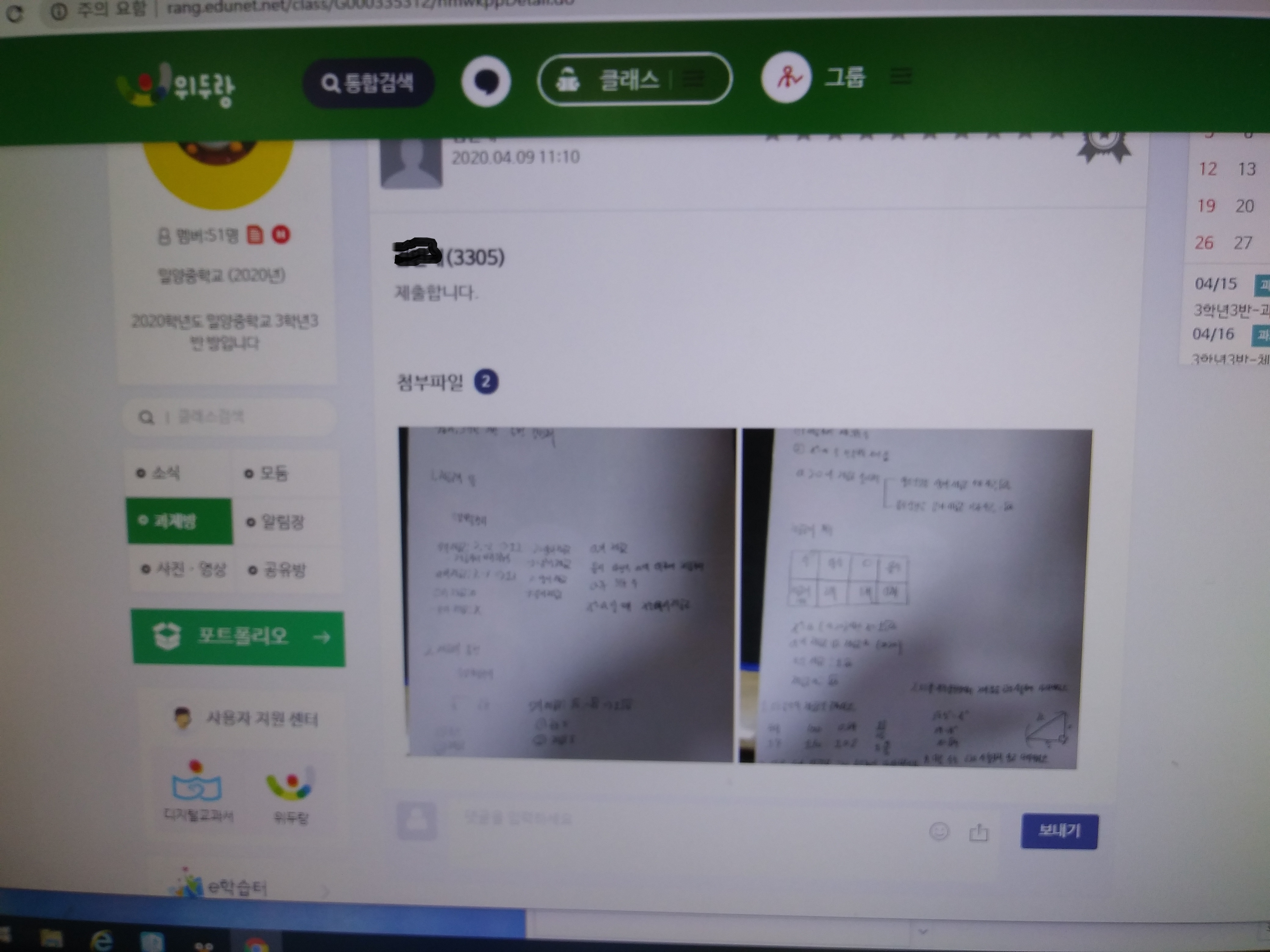 2. 과제제출확인하여 제출하지 않은 학생에게 제출 독려